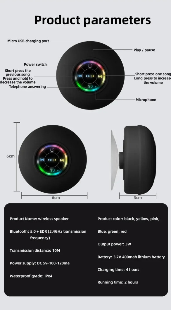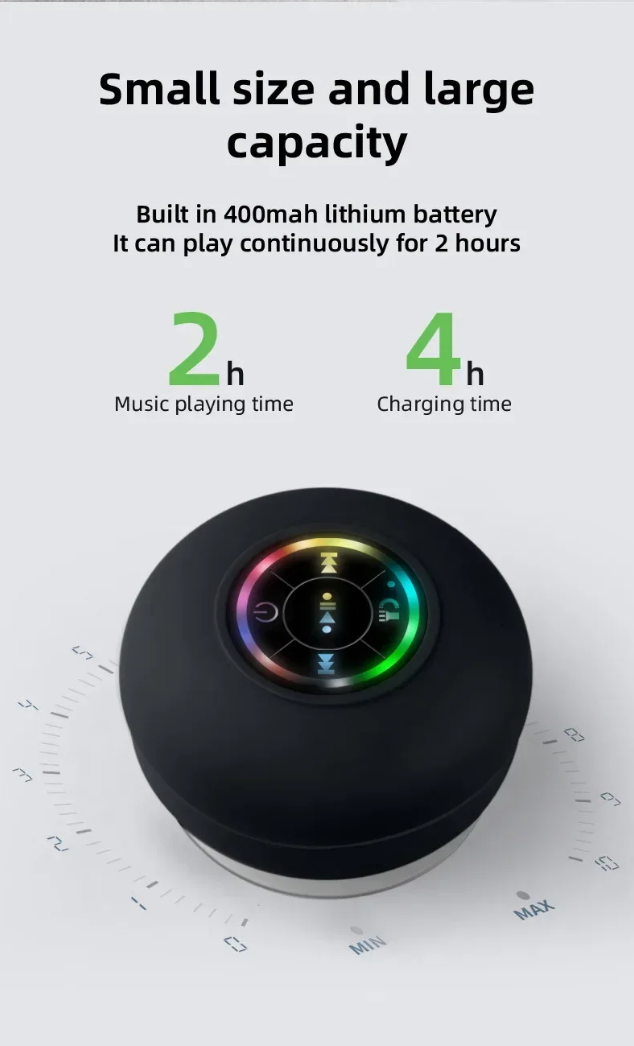 Waterproof Bluetooth Wireless Shower Speaker Bathroom Speaker LED Light Portable